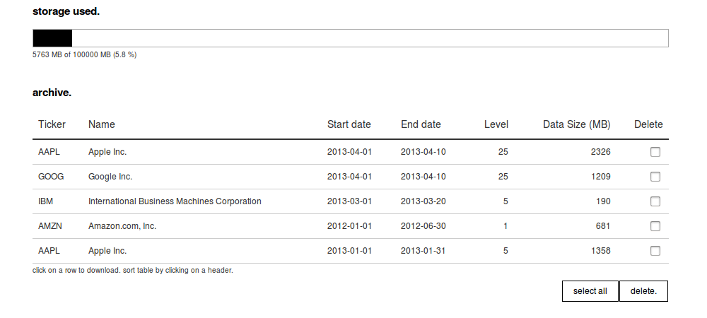 Assume, for example, someone wants to request 10 level limit order book data for Apple (AAPL) from June 2011 to December 2012. Requesting